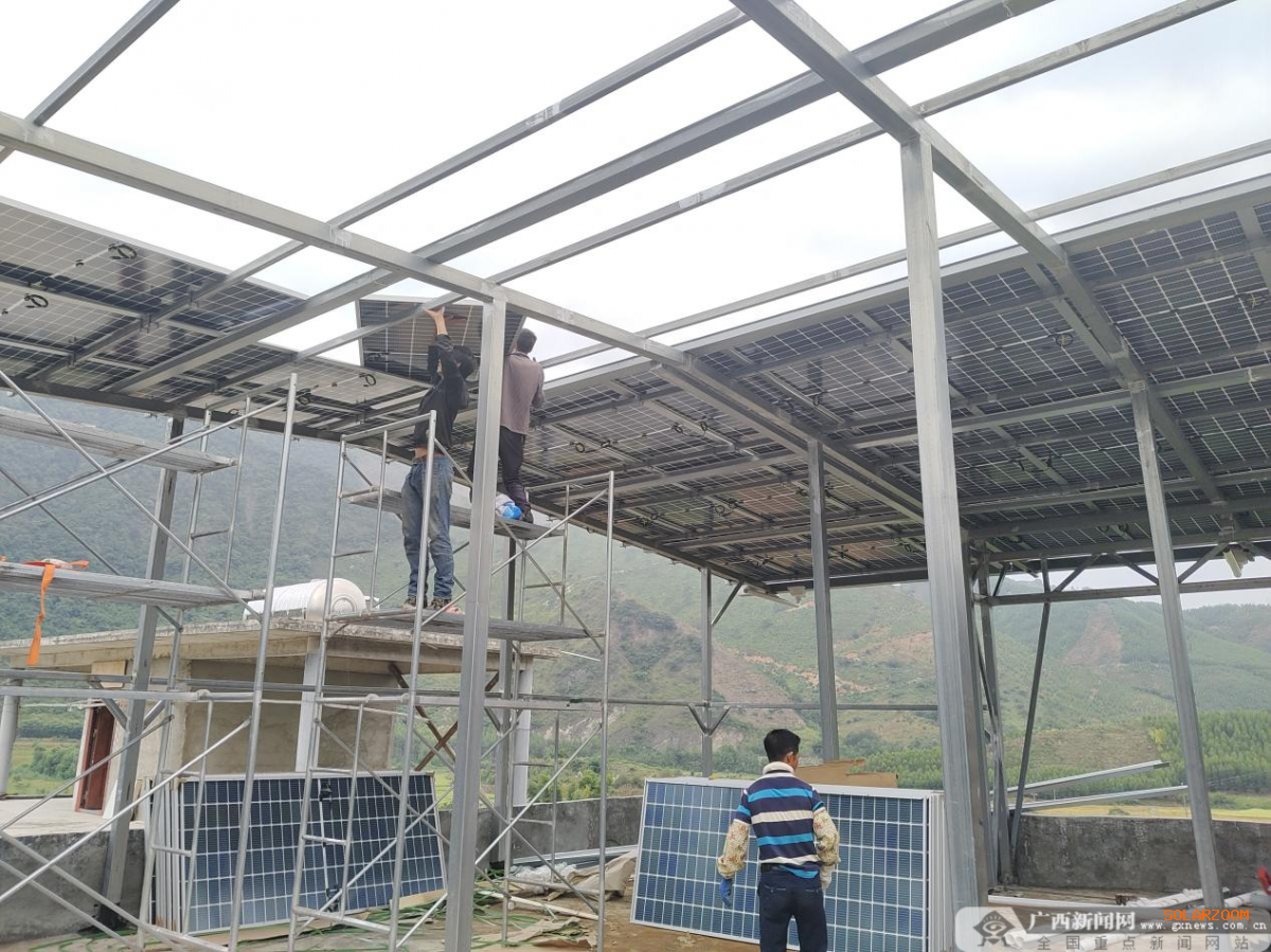 今年以来,板干村积极探索农村新能源发展的道路,引进广西桂林曜芝新能源科技有限公司的光伏新能源,采取“房顶租赁”的方式来安装光伏板,为村集体经济增加稳定的收入。