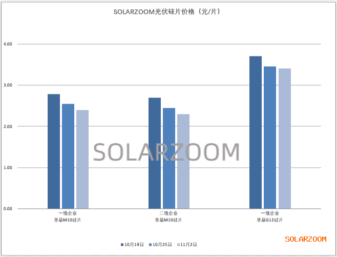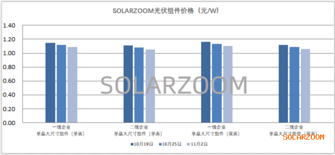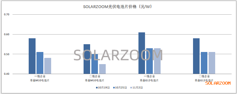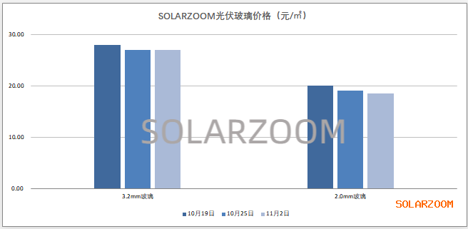 辅材方面,来至11月,组件厂商对辅材备货采购需求略显疲软,组件价格的降价使得组件厂商对辅材价格的压价较为明显,部分辅材价格已开始下跌,本周EVA胶膜价格下滑至7-8元/㎡区间;3.2mm的玻璃价格来至26.5-27.5元/㎡区间,2.0mm的光伏玻璃价格来至18.5元/㎡左右,短期仍有继续下跌的可能。