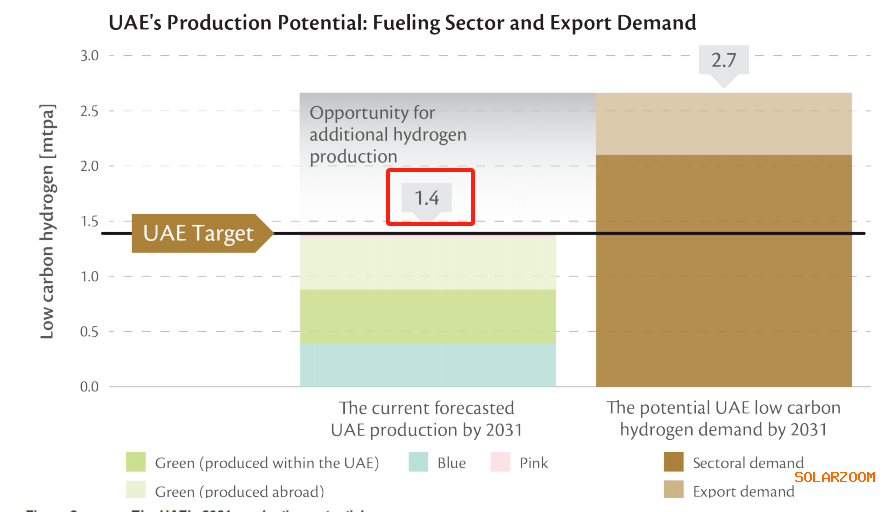此外,该战略还指出,阿联酋生产出来的氢气将主要作用于国内工业的脱碳发展。到2031年,阿联酋的氢能需求量将可达270万吨/年,其中包括出口的60万吨/年。
