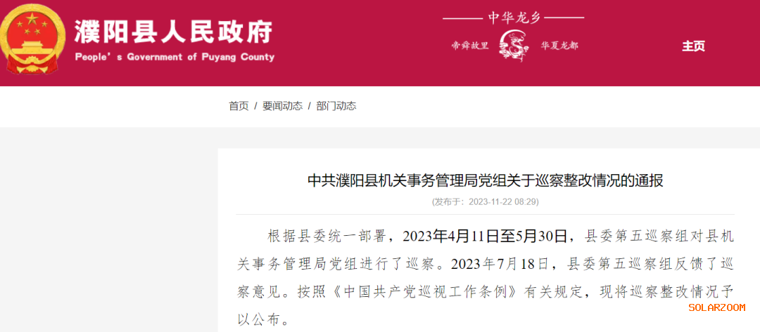 11月22日,濮阳县人民政府发布《中共濮阳县机关事务管理局党组关于巡察整改情况的通报》。