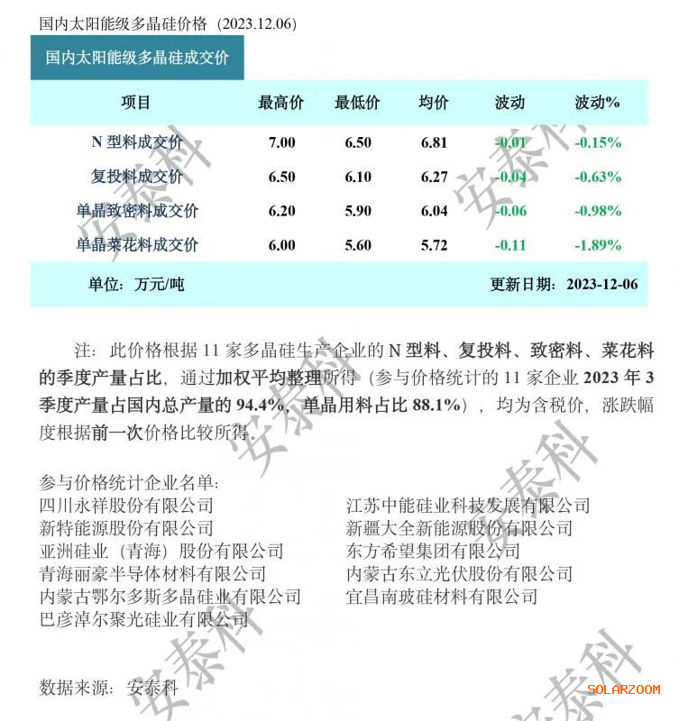 而组件执行价格还在持续混乱,观察国内需求,12月预期地面大型项目将开始收尾,拉货开始趋缓,今年并没有明确节点,也因此部分受组件价格探底影响延迟。而分布式现货市场则受到抛货、捆绑销售等策略影响,价格持续混乱。