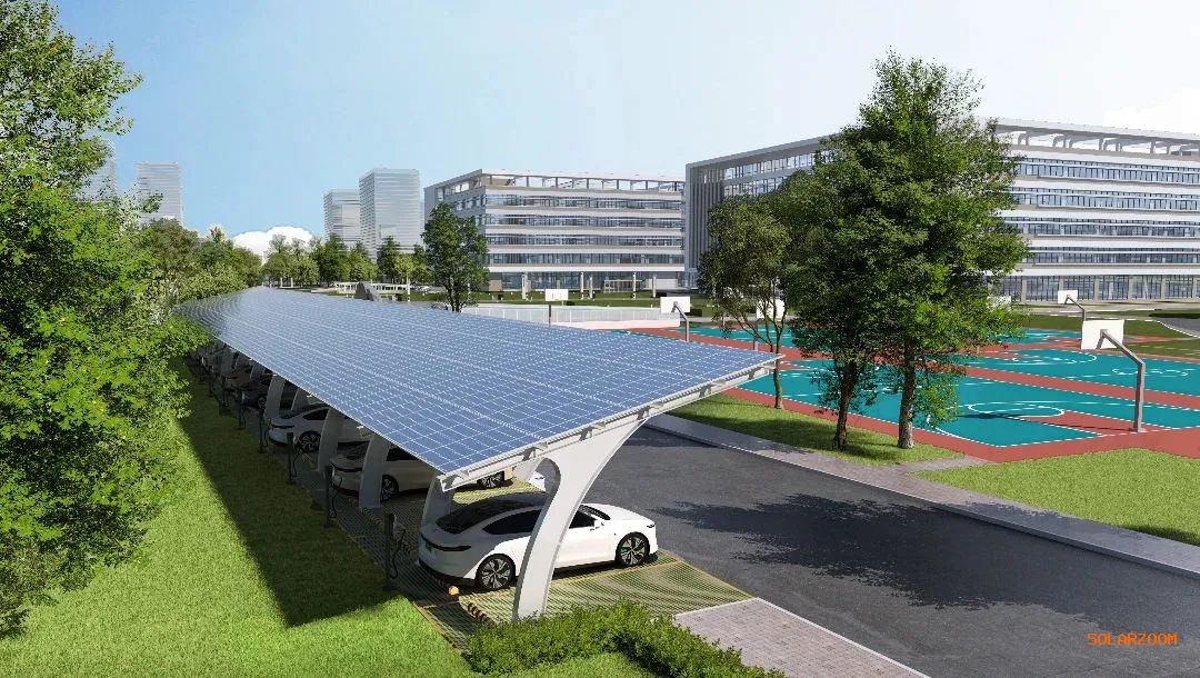 实训楼建设"风光储充"系统,充分利用风光资源,提供稳定可靠的动力支持,融合储能、绿色交通充电设施,让绿色用能理念深植校园每一个角落。