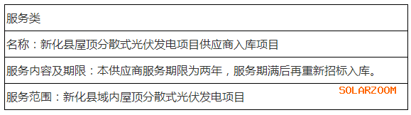 项目名称:新化县屋顶分散式光伏发电项目供应商入库项目