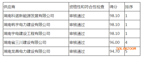 湖南天湘项目管理有限公司受新化县乡村建设投资集团有限公司的委托,对新化县屋顶分散式光伏发电项目供应商入库项目进行公开招标,经评标委员会认真、细致评审,现将评标结果信息公示如下: