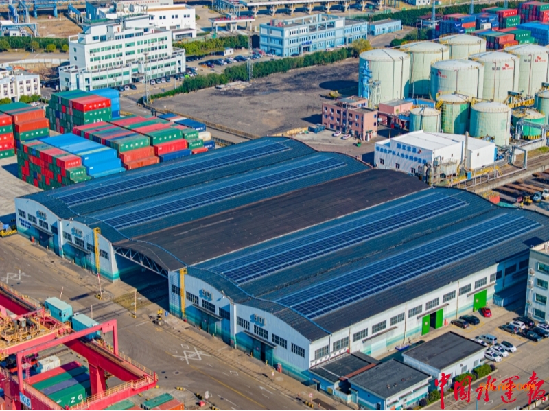 从空中俯瞰,宁波舟山港镇海港区的杂货仓库变了模样,屋顶上整齐铺设4大块太阳能光伏面板,正源源不断地产生着绿色电能,输送往港区各处。1月29日,镇海港区901/902仓库光伏屋面发电项目正式投用,预计全年发电量可达87万千瓦时,约占该港区杂货片区全年用电量的15%,这是该港区建设绿色港口、打造低碳生活的最新成果。