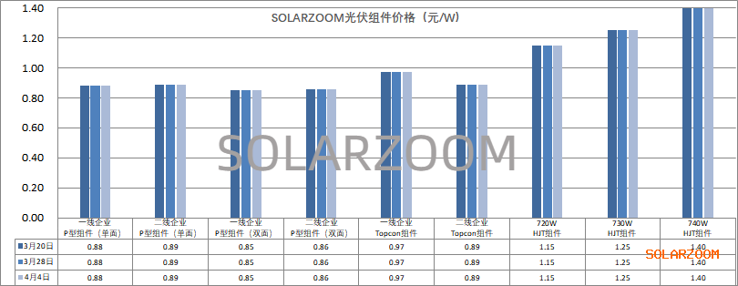本周国内组件相比上游环节表现略显平淡,而上游各环节价格的走弱以及近期最新组件招投标项目价格的新低使得前期部分组件厂商涨价声音减弱,不排除后期组件价格会随着上游降价带动成本下调而出现组件价格松动的可能。当前市场上组件价格价差依然明显,尤其是国内分布式项目的组件价格,本周Topcon组件主流组件价格0.88-0.97元/W,P型组件价格0.83-0.88元/W,但各类价格更低的组件仍在市场上有销售。HJT组件方面,本周又一央企的招标项目中出现HJT项目标段,国内对HJT组件需求整体处于增加中,HJT组件价格上近期未有明显波动,各功率段价格分化明显,710/720/730W组件价格分别在1.05、1.15、1.25元/W。
