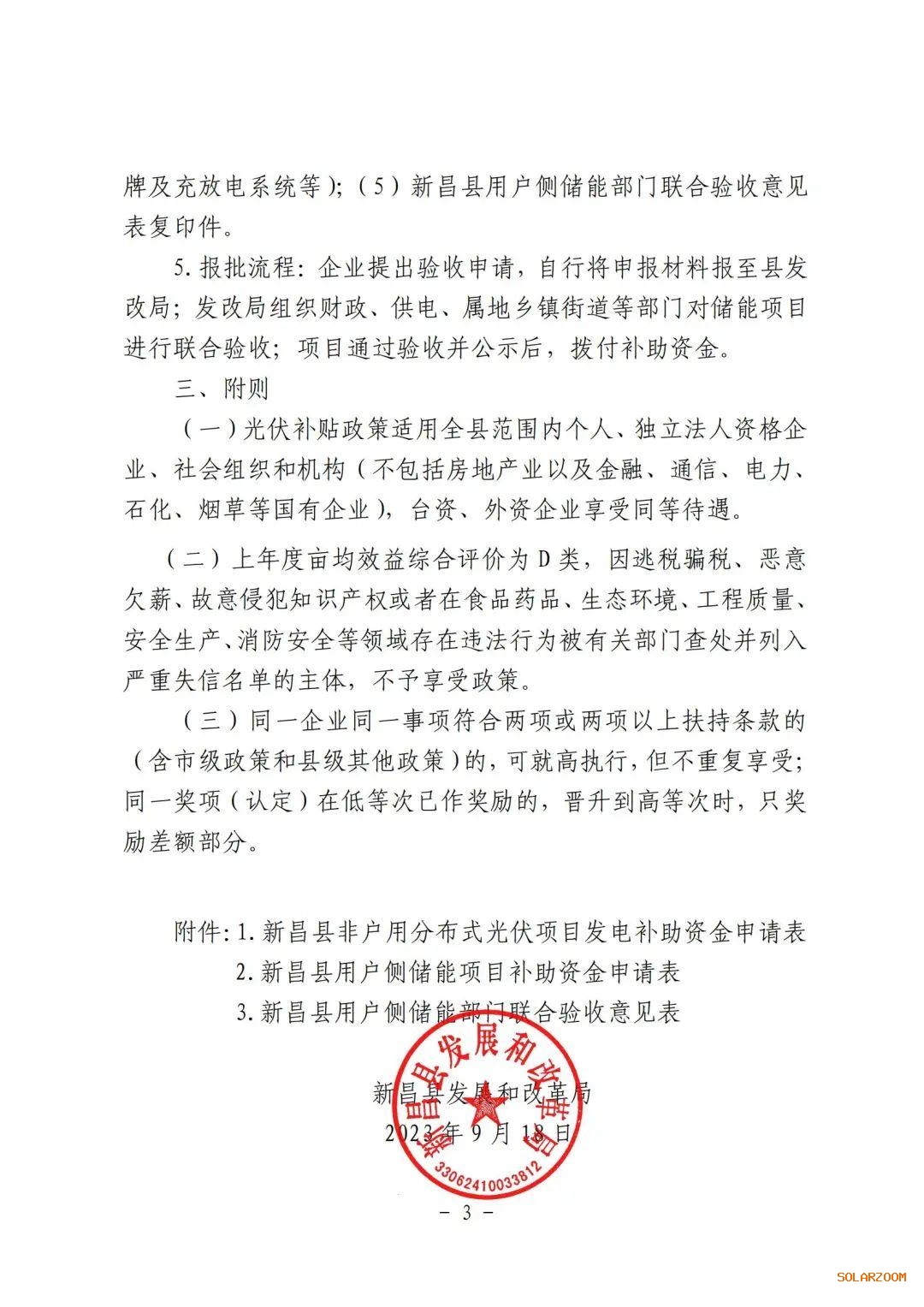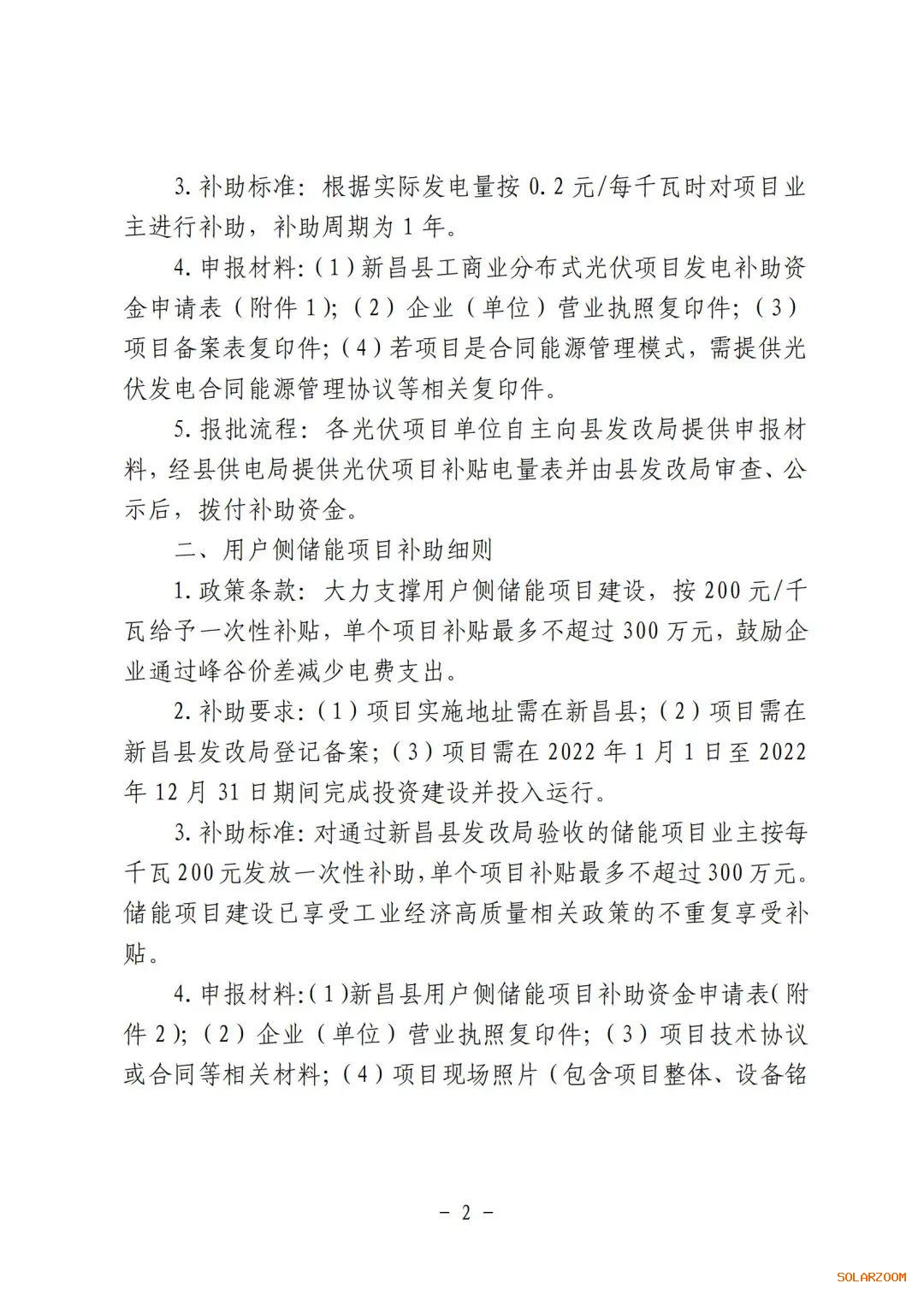 附件:关于印发新昌县2022年度非户用分布式光伏项目及用户侧储能项目奖补实施细则的通知