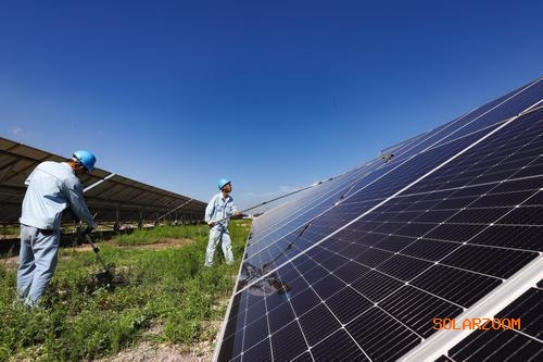 齐鲁石化持续提高光伏发电站管理水平,建立厂、车间、班组、电站和无人机“五位一体”巡检机制,强化光伏发电站日常维护,定期清洗光伏板,及时清除遮挡物,确保发电效益最大化。截至7月31日,公司光伏发电项目自投产以来,累计发电5200万千瓦时。图为7月30日热电厂光伏发电站维护人员进行光伏板清洁。