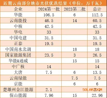 目前,云南2024年第一批光伏竞争优选结果已经陆续公示,但是由于各地方政府发起招标的层级不同,故稍显混乱。此前,光伏们根据公开信息查询了近期云南完成竞争优选的光伏指标,规模总计已超4GW。(《云南3.4GW光伏优选结果:华能、云南能投、中核领衔》)