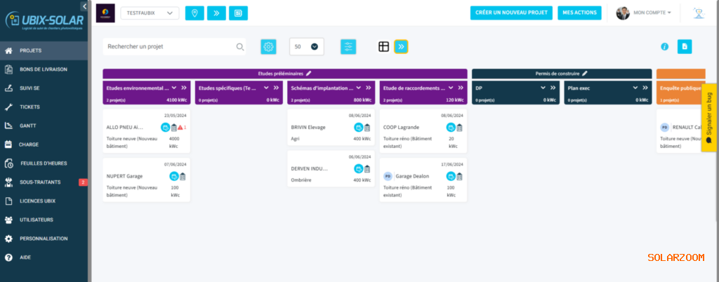 Ubix-Solar软件的功能涵盖CRM、项目行政管理、自动化现场规划和进度跟踪、直接向公司发送预订信息、即时生成报告、验收报告和成本监控。