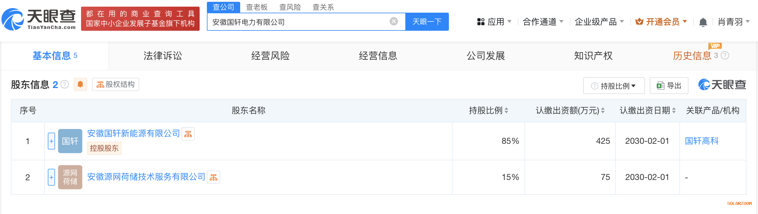 天眼查App显示,近日,安徽国轩电力有限公司成立,法定代表人为纵华星,注册资本500万人民币,经营范围含新兴能源技术研发、太阳能发电技术服务、发电技术服务、新能源原动设备销售、储能技术服务、标准化服务等。股东信息显示,该公司由国轩高科(002074)旗下安徽国轩新能源有限公司、安徽源网荷储技术服务有限公司共同持股。