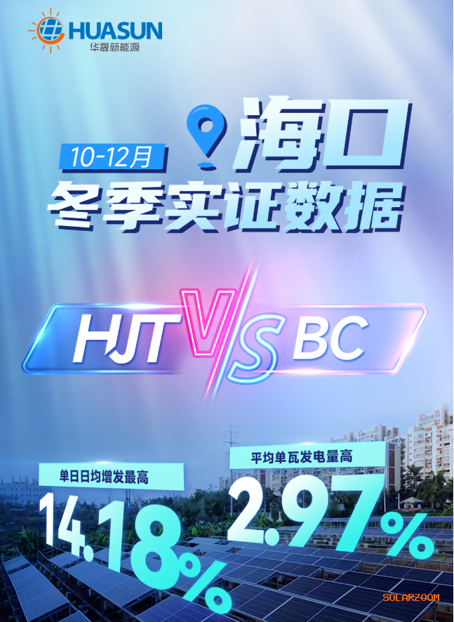 在CTC国检集团海南实证基地,为期三个月实证数据出炉。在2024年10月至12月冬季期间,在高温高湿条件下,HJT组件的单瓦发电量优于BC组件,平均单瓦发电量高2.97%,单日日均增发最高14.18%。