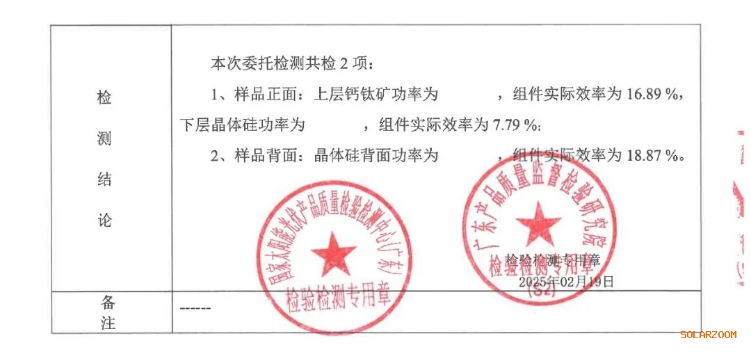 近日,鸿钧新能源与广东脉络能源联合实验室成功研发一款钙钛矿-异质结四端叠层光伏组件,并获得国家太阳能光伏产品质量检测中心的认证测试。