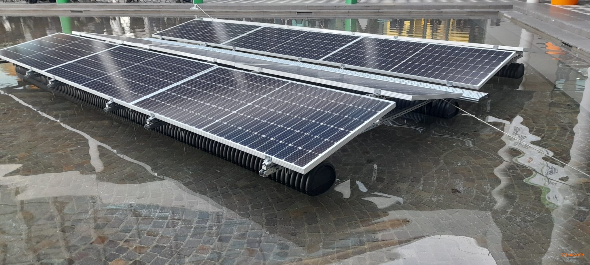 单一岛式和阵列式配置均以1/50的比例模型制造。该岛是指一个装有16块光伏面板的浮动单元,其尺寸为长19.5cm、宽9.5cm、高3.8cm。