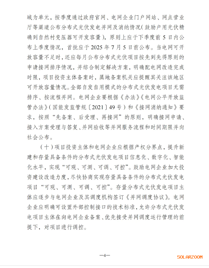 允许整村连片户用分布式光伏项目合并备案、集中汇流接入,原则上以光伏逆变器出口侧为产权分界点,项目投资主体也可与电网企业友好协商确定。