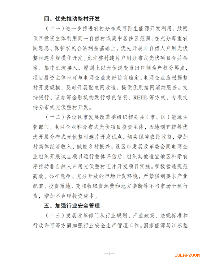 电网企业应根据整村开发规模,及时开展配电网改造,提供优质接网消纳服务。支持银行、证券等金融机构发行绿色信贷、REITs等方式,专项支持分布式光伏整村开发。