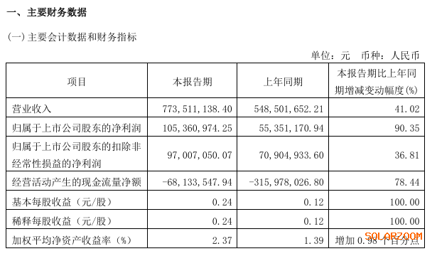 4月11日禾望电气(603063.SH)公布2025年第一季度报告,报告期实现营业收入7.74亿元,同比增长41.02%;归属于上市公司股东的净利润1.05亿元,同比增长90.35%;基本每股收益0.24元。