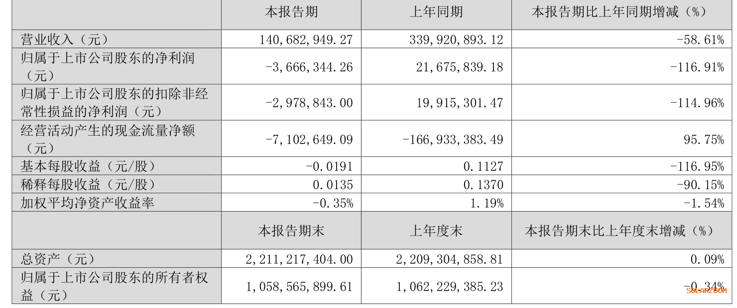 欧晶科技(001269)4月28日披露2025年第一季度报告。公司实现营业总收入1.41亿元,同比下降58.61%;归母净利润亏损366.63万元,上年同期盈利2167.58万元;扣非净利润亏损297.88万元,上年同期盈利1991.53万元;经营活动产生的现金流量净额为-710.26万元,上年同期为-1.67亿元;报告期内,欧晶科技基本每股收益为-0.0191元,加权平均净资产收益率为-0.35%。