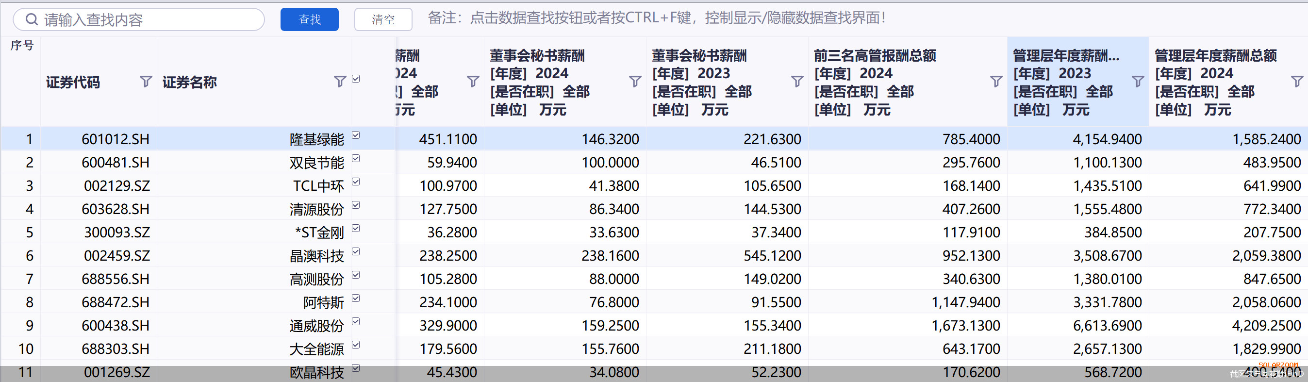 其中,光伏行业巨头隆基绿能2024年管理层年度降薪总额居首。同花顺iFinD数据显示,隆基绿能2024年管理层年度薪酬总额约为1585.24万元,相较2023年的4154.94万元下降2569.7万元。