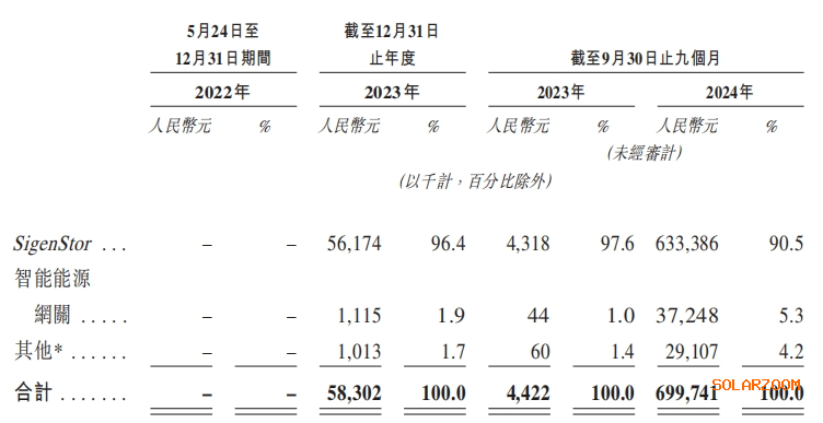 招股书显示,2023年、2024年前三季度,SigenStor的销售额贡献了公司总收入的逾90%。