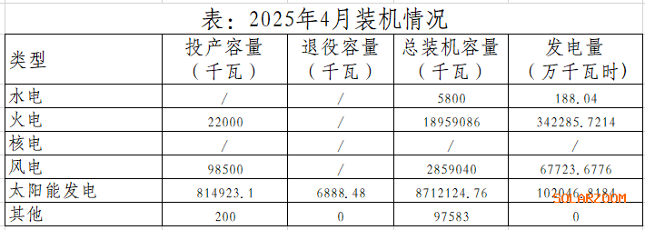 记者获悉,天津电力交易中心发布4月度发电装机及分类型总体情况和发电总体情况,详情如下: