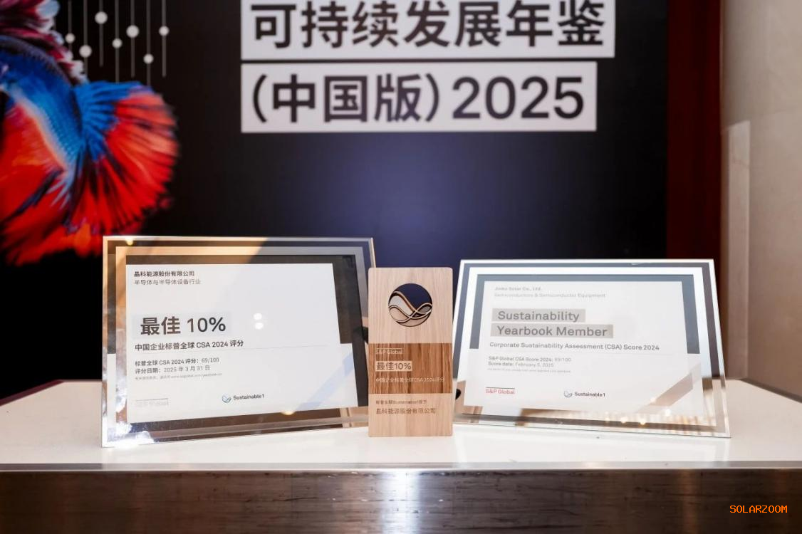 《可持续发展年鉴(中国版)》旨在识别并表彰在各自行业中展现出可持续发展优势的中国企业。截至2025年3月31日,共有1,600余家获得2024企业可持续发展评估(CSA)的企业被考虑纳入《可持续发展年鉴(中国版)2025》,最终160余家脱颖而出,入选《可持续发展年鉴(中国版)2025》。此次晶科能源能够成功入选,体现了其在环境管理、社会责任履行以及公司治理等多维度的突出表现,也彰显了其在技术创新、清洁能源解决方案提供以及应对气候变化等方面的杰出贡献。