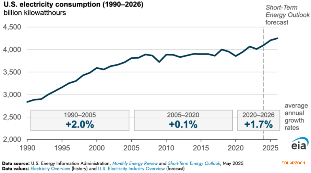 5月6日,美国能源信息署(以下简称“EIA”)在其《短期能源展望》(STEO)中表示,美国的电力消耗将在2025年和2026年创下历史新高。