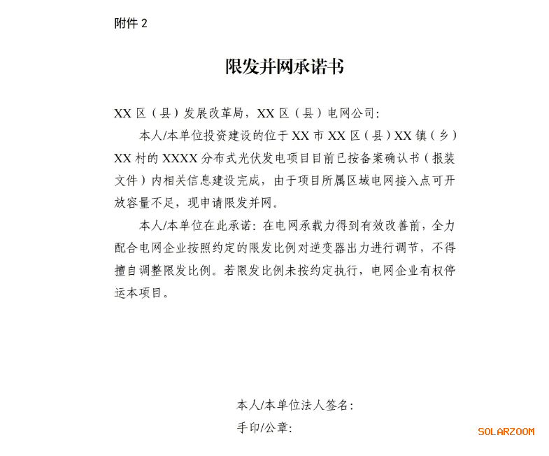 5月23日前,项目投资主体应与县发改局签订限发并网承诺书。