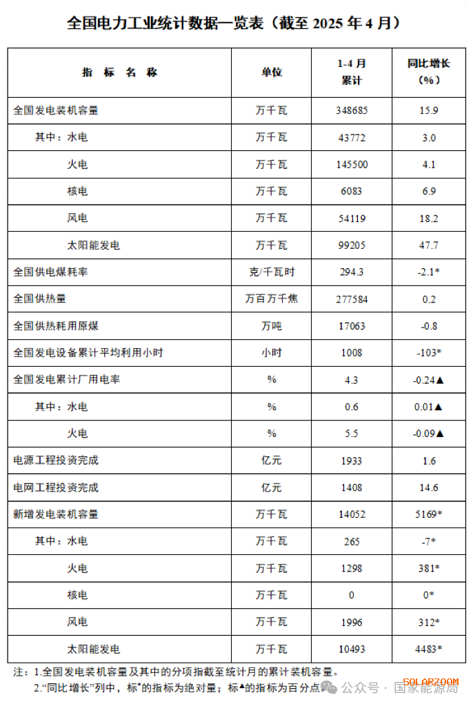 5月22日,国家能源局发布1-4月份全国电力工业统计数据。