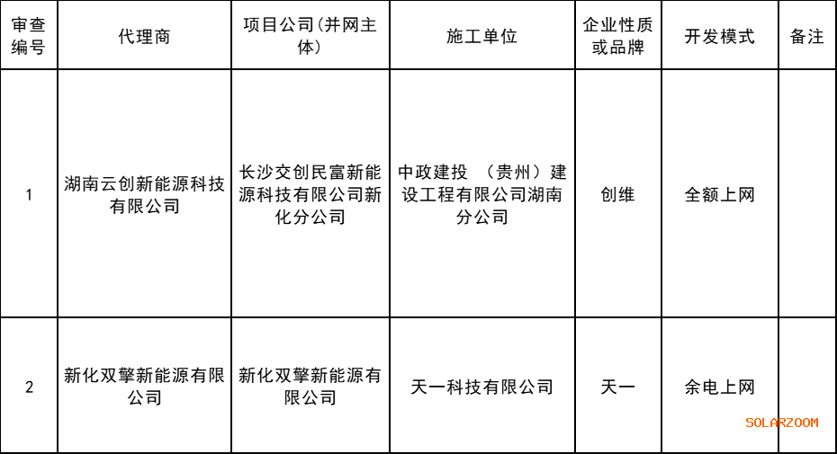 根据湖南省发展和改革委员会、国家能源局湖南监管办公室、国网湖南省电力有限公司《关于支持分布式光伏发展规范相关管理事项的通知》(湘发改能源〔2023〕858号)和《娄底市发展和改革委员会关于进一步规范屋顶分布式光伏建设的有关通知》《新化县人民政府办公室关于进一步规范屋顶分布式光伏项目管理工作的通知》(新政办函〔2023〕29号)要求,经企业申请,我局综合审核了公司施工资质、开发业绩、安全生产、运维管理、开发模式等,同意对以下2家分布式光伏开发企业及品牌代理商进行信息登记报备,现向社会公示。
