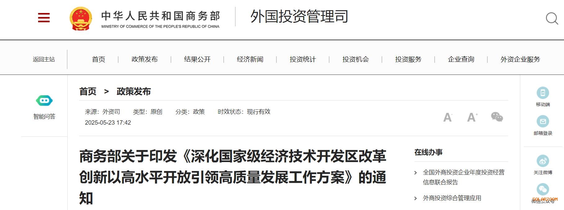 为贯彻落实党中央、国务院决策部署,商务部会同有关方面制定了《深化国家级经济技术开发区改革创新以高水平开放引领高质量发展工作方案》,经国务院同意,现予印发,请认真组织实施。
