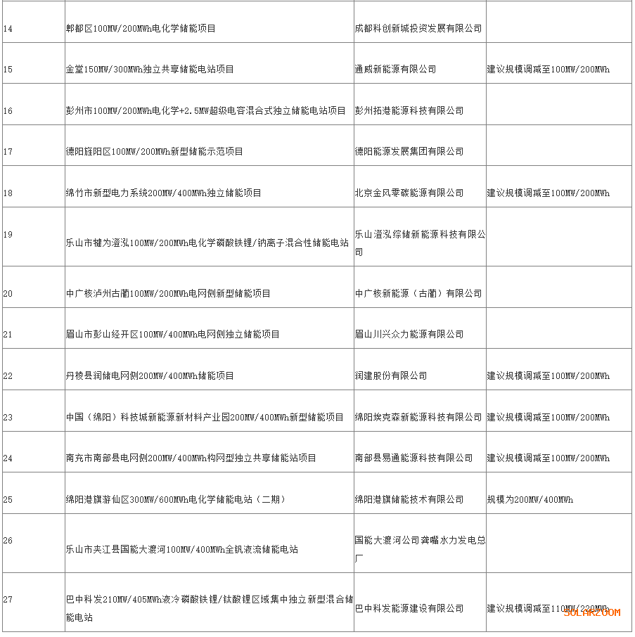 根据《关于开展2025年电网侧新型储能项目申报工作的通知》(川发改能源〔2025〕65号,以下简称《通知》),经各市(州)推荐和专家评估论证,拟将“龙泉驿区100MW/200MWh”等27个项目纳入新型储能项目清单,现予以公示。项目正式纳入清单后,将按照市场化方式推动实施,相关市(州)能源行业主管部门和电网企业做好协调服务保障工作。