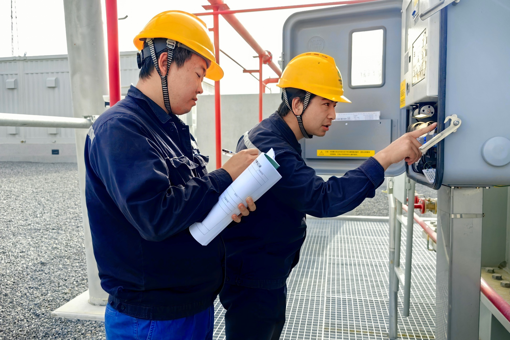 运维人员正在对220千伏升压汇集站主变压器进行巡检 (苏波 摄)