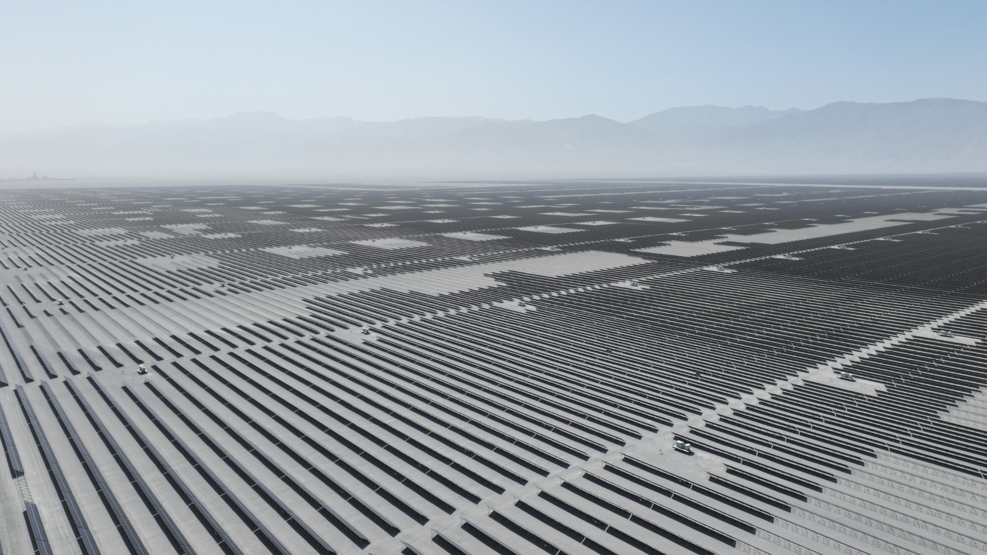 该项目位于塔克拉玛干沙漠东南缘的若羌县,占地76.02平方公里(约合1.06万个标准足球场),总投资110亿元,2023年8月启动建设,共安装604万块光伏板。