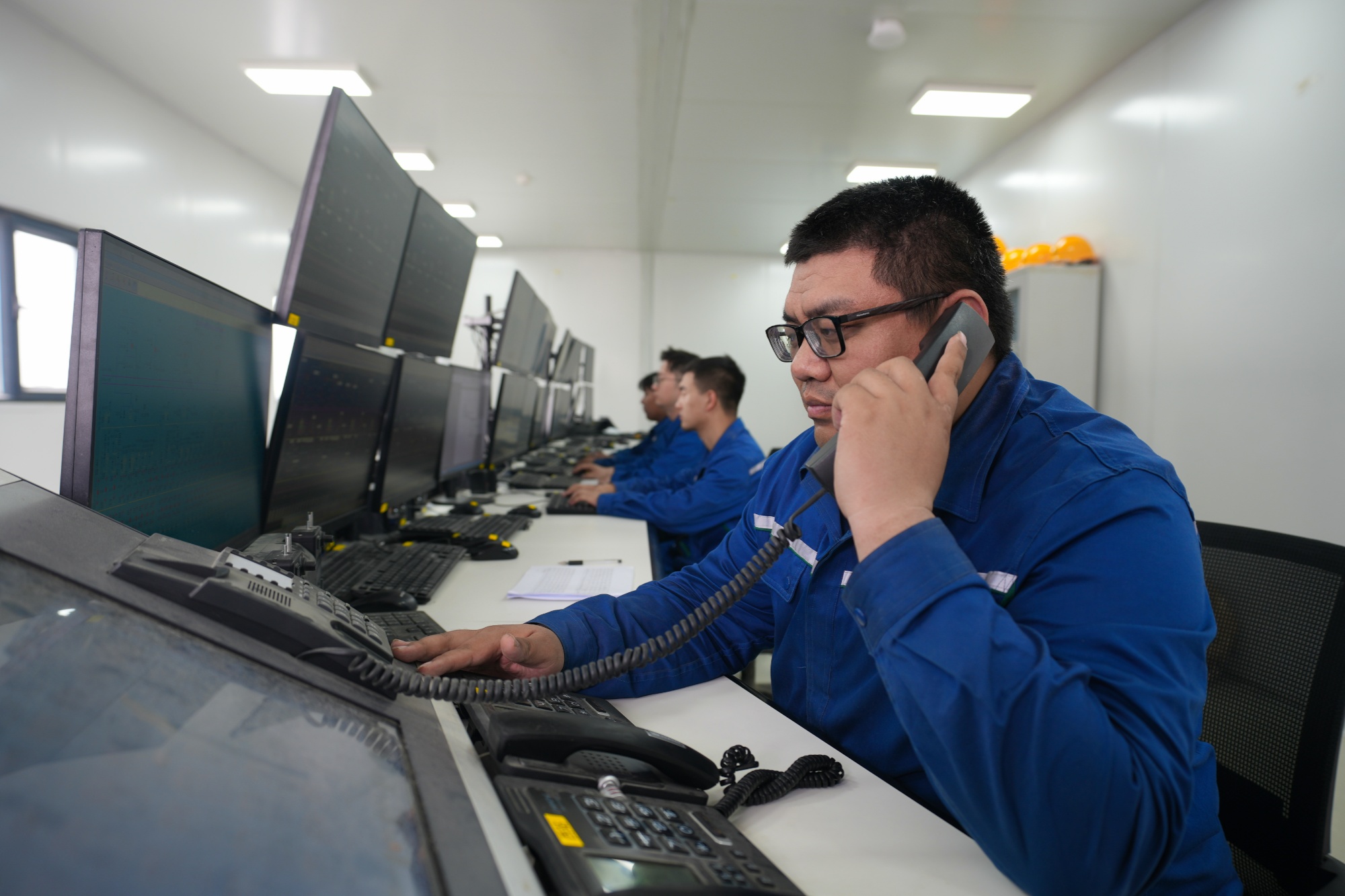 5月29日22时42分,伴随着AGC(自动发电控制)系统接收到新疆电力调度控制中心第一个调度指令,中国绿发新疆中绿电若羌400万千瓦光伏项目成功实现全容量转商运行 (苏波 摄)