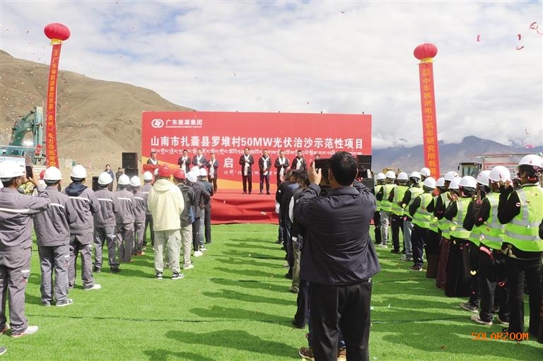 扎囊县罗堆村50MW光伏治沙项目由广东省能源集团西南(贵州)电力投资有限公司与中车株洲电力机车研究所有限公司联合建设,项目占地1073亩,总投资2.4亿元。计划于2025年10月30日前实现全容量并网发电,投产后预计年上网电量可达1亿千瓦时,将有力推动山南市能源结构向绿色低碳转型。