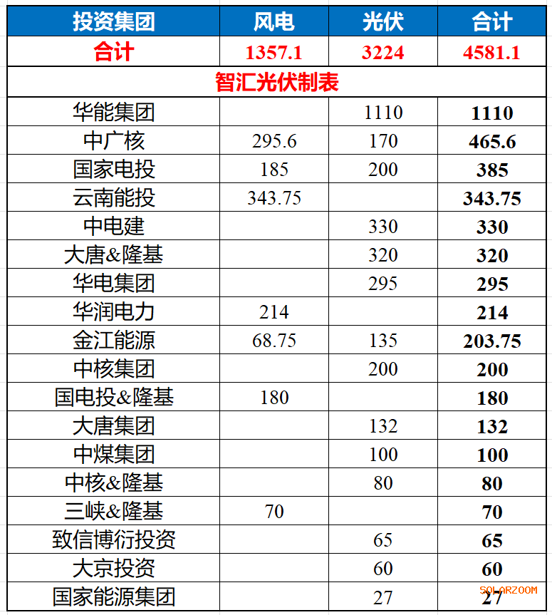 中广核、国家电投、云南能投、中电建、大唐集团等:均获得超过300MW的项目指标;