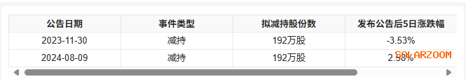 数据显示,该公司近三年累计发布减持计划公告2次,其每次披露拟减持股份数如下表所示,需要注意的是,公告中披露拟减持股份数量不代表最终实际减持股份数。从回测数据来看,该公司近三年拟减持公告发布后,5日内的股价平均跌幅为0.48%,30日内的股价平均涨幅为2.63%。
