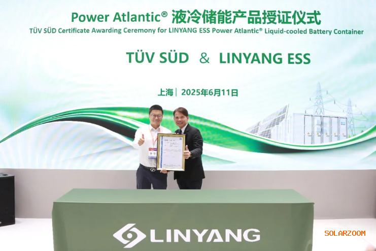 期间,TÜV南德意志集团为林洋能源颁发可持续发展报告独立鉴证声明,并同步宣布林洋储能自主研发的Power Atlantic®液冷储能电池舱(5MWh)成功通过CE认证。双认证的获得标志着林洋能源在可持续发展与技术创新领域实现双重突破。