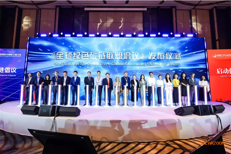 在“SNEC PV+第十八届国际太阳能光伏与智慧能源大会”开幕式上,由全球绿色能源理事会(GGEIC)、亚洲光伏产业协会(APVIA)等20余家权威机构与头部企业联合发起的“全球绿色碳链联盟倡议”(Global Green Carbon Community Alliance Initiative)正式全球首发。作为大会协办方及联盟成员之一,林洋能源高级副总裁陆丹青女士代表公司出席并见证发布仪式。