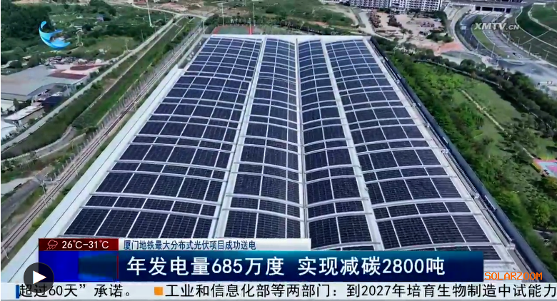 近日,厦门地铁厦门北车辆段光伏项目成功送电,这是目前厦门地铁装机容量和发电量最大的分布式光伏项目,每年可发电685万度,减少二氧化碳排放约2800吨。