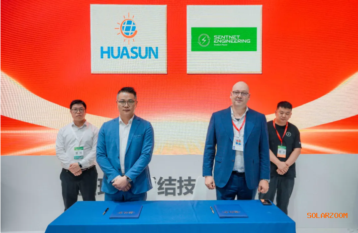 在应用场景方面,华晟新能源与意大利农业光伏创新解决方案提供商Sentnet Group达成重要战略合作,通过将华晟新能源自主研发的昆仑G12R-132超高双面率垂直组件与Sentnet创新设计的垂直光伏系统技术深度融合,打造“光伏+农业”全新解决方案,共同推进GW级垂直农光项目在全球范围内的规模化应用。此外,华晟新能源还携手电动车辆制造商金彭集团,探索“光伏+汽车”的创新应用场景,进一步拓展异质结技术的跨界价值。