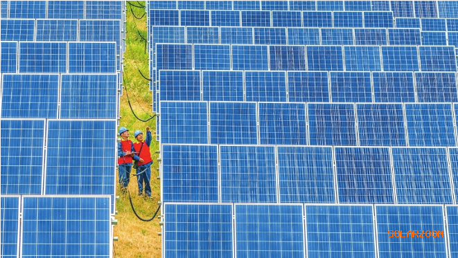 6月18日,山西省运城市芮城县光伏领跑技术基地,国网山西运城供电公司工作人员协助基地检查光伏装置及并网设备安全。近年来,芮城县大力推动光伏等新能源产业,基地总装机容量1690兆瓦,年发电量约18亿千瓦时。