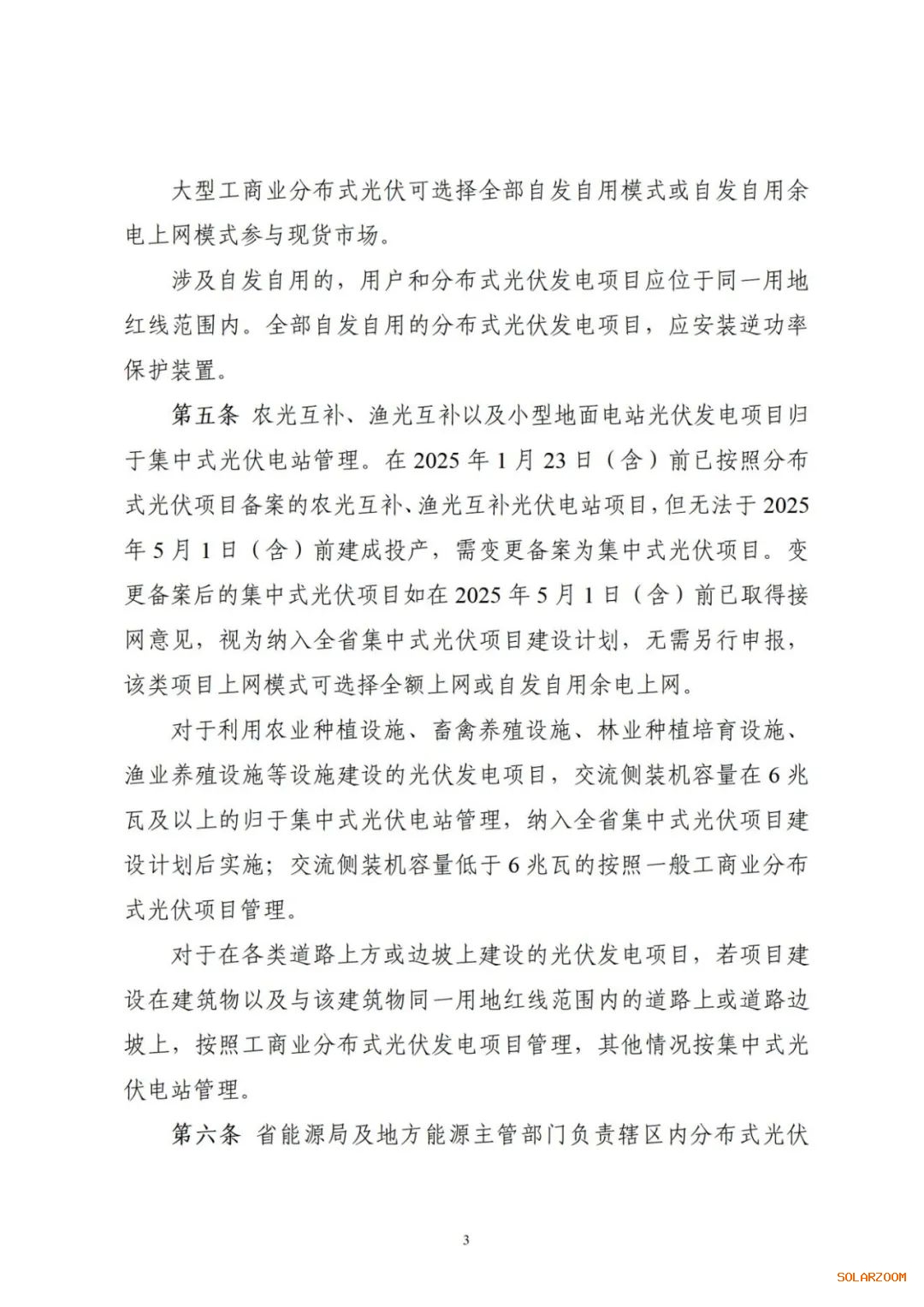 近日记者了解到,7月7日,浙江省能源局发布关于印发《浙江省分布式光伏发电开发建设管理实施细则》的通知。 文件明确,一般工商业分布式光伏可选择全部自发自用或者自发自用余电上网模式;采用自发自用余电上网的,年自发自用电量占发电量的比例不作要求。 农光互补、渔光互补以及小型地面电站光伏发电项目归于集中式光伏电站管理。在2025年1月23日(含)前已按照分布式光伏项目备案的农光互补、渔光互补光伏电站项目,但无法于2025年5月1日(含)前建成投产,需变更备案为集中式光伏项目。变更备案后的集中式光伏项目如在2025年5月1日(含)前已取得接网意见,视为纳入全省集中式光伏项目建设计划,无需另行申报,该类项目上网模式可选择全额上网或自发自用余电上网。 对于在各类道路上方或边坡上建设的光伏发电项目,若项目建设在建筑物以及与该建筑物同一用地红线范围内的道路上或道路边坡上,按照工商业分布式光伏发电项目管理,其他情况按集中式光伏电站管理。 原文如下: 省能源局关于印发《浙江省分布式光伏发电开发建设管理实施细则》的通知