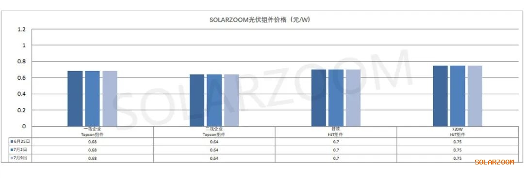7月虽然是国内外终端需求淡季,但在上游各环节涨价氛围的烘托下,组件端也开始有组件企业试探性报涨价格,前期走低的组件报价开始有报0.68元/W,甚至市场传出0.7元/W左右价格报出,但实际尚未有成交出现,当前组件厂商在排产交付前期的所签订单,但随着整体产业链价格上涨,也不排除出现前期签订单重新议价的可能。这一轮光伏产业链价格上涨多为政策以及成本压力的推导,但整个产业链成交价格能否顺利上涨,也还需看终端项目端的需求,以及终端对价格接受度而定。
