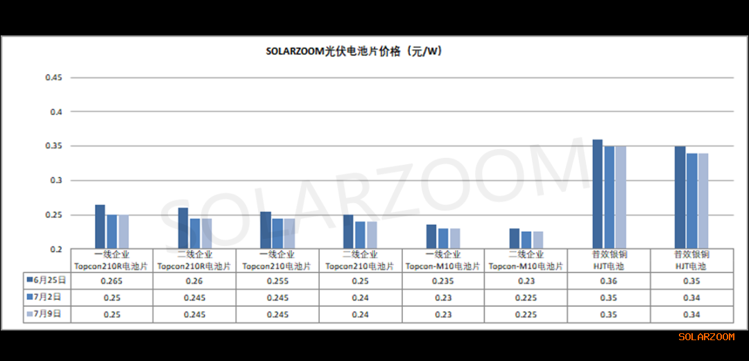HJT电池方面,当前国内HJT电池产线排产率不高,且继续下调,而在面对下游现有的HJT电池需求以及HJT电池成本下,HJT电池在产企业坚挺价格意愿明显,低位价格微降,当前HJT电池价格为0.34-0.36元/片区间。