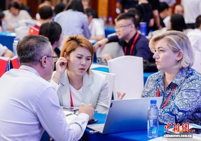 7月7日,甘肃省新能源及新能源装备进出口洽谈对接会在兰州举行。图为甘肃企业与采购企业洽谈对接。甘肃省商务厅 供图