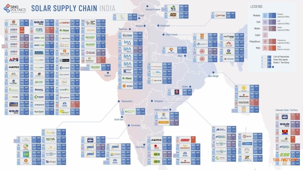 “印度正迅速成为全球太阳能制造和出口中心。在最新版地图中新增了一些关键制造商,这反映出该行业正在经历不断扩张,”Sinovoltaics首席执行官Dricus de Rooij在一份声明中表示。