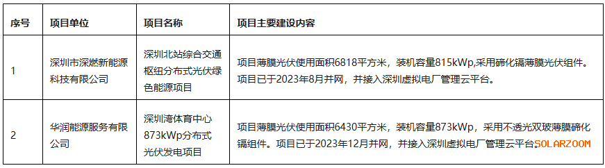 深圳市薄膜光伏示范项目(第一批)拟补助项目清单