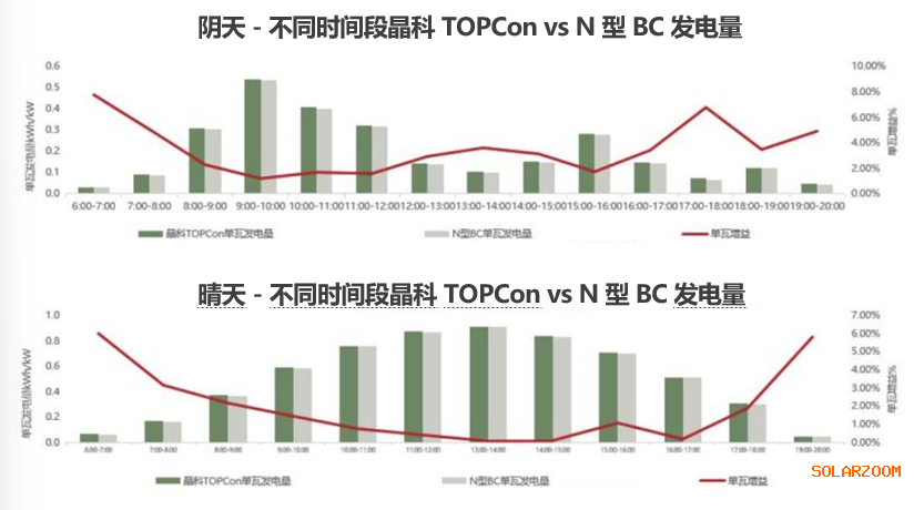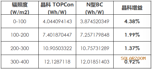 阴天:TOPCon组件相比N型BC组件的单瓦发电增益为3.89%